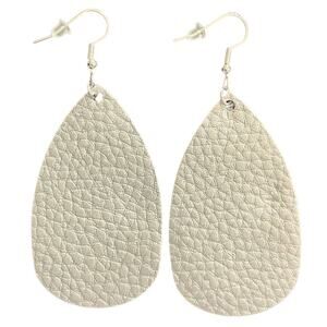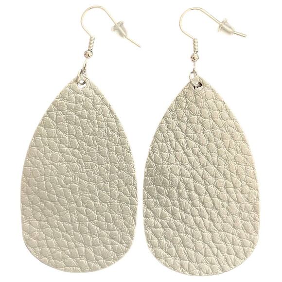Silver Textured Leather Teardrop Earrings