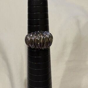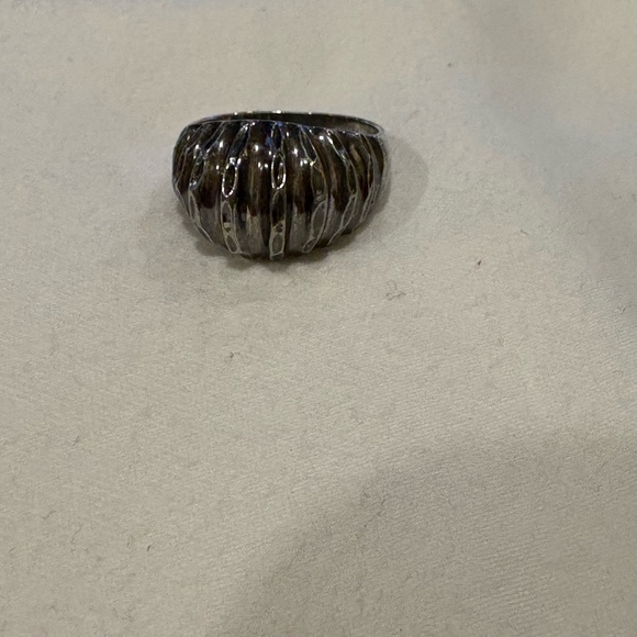 Elegant silver ring with a unique textured design ribbed dome. 4