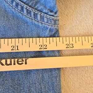 In good pre-owned condition. There is a bleach/lighter spot on the front of the shirt (could easily be covered with a patch). Please see photos for a better visual description and to see the measurements.