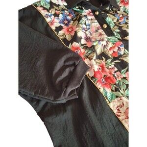 Silver Threads Womens Black vintage windbreaker Shirt Pullover 1X Floral Button