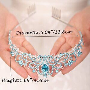 Silver Tiara and Crown for Women - Elegant Light Blue Crystal Tiara Headband for
