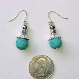 Silver & Tibetan Turquoise Marble Drop Earrings NWT