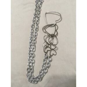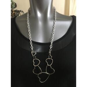 Chain is a brighter silver tone or hearts are starting to discolor a little. 28 inches long