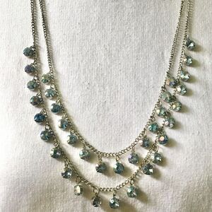 Silver Tone Iridized AB Glass Dangling Rhinestone Layered 32in Long Double Chain Necklace