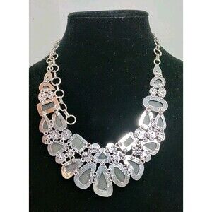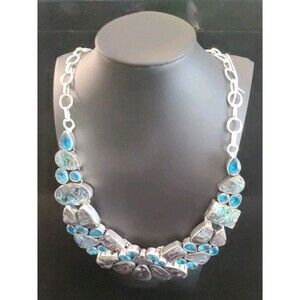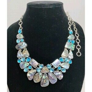 Silver Tone Abalone 925 Statement Bib Necklace 18" To 22" Drop Hand Made