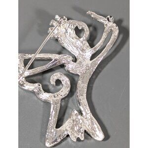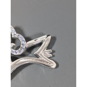 Silver Tone Angely Brooch Blue Rhinestone Christmas Winter Birthstone