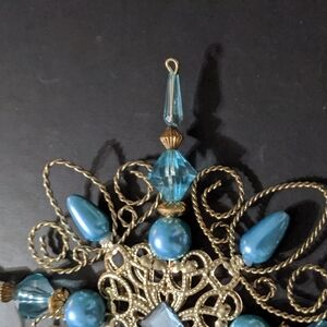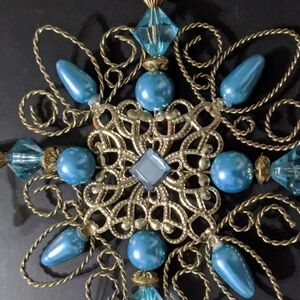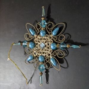 Vintage Silver Tone Aqua Blue Bead and Wire Star Ornament Decoration. 6"