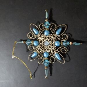 Silver Tone Aqua Blue Bead and Wire Star Ornament Decoration