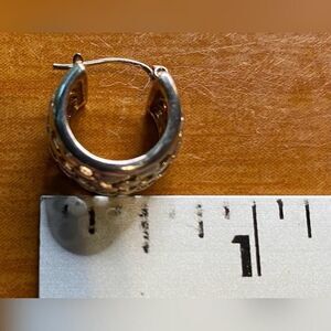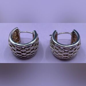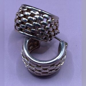 Item: Silver tone basketweave hoop earrings for pierced ears