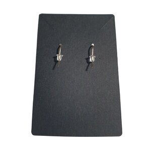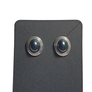 Silver Tone Black Cabochon Round Stud Earrings Vintage Style Pierced Post
