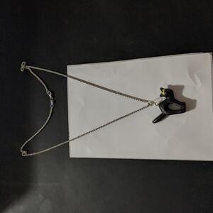 Silver Tone Black Cat Arched Spooky Scaredy Cat Pendant Statement Necklace. Super cute - great for Halloween or anytime!