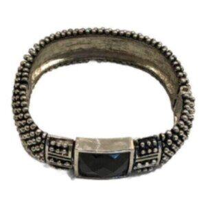 Silver Tone Beaded Bangle w/Black Stone