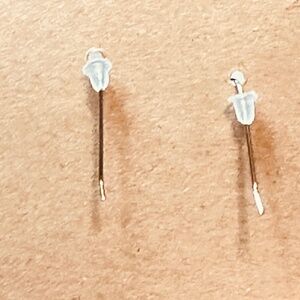 Silver Tone & Blue Stone/Bead Earrings. Hinge at Halfway