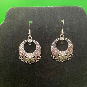 Silver Tone Bohemian Filigree Dangle Earrings Folk Art Style Women's Fashion