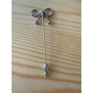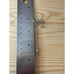 Silver Tone Bow Stick Pin Brooch With Safety Clutch