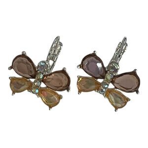Silver Tone Butterfly Rhinestone Earrings Pierced 1 Drop Multicolored Dainty