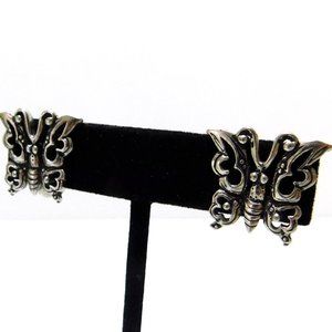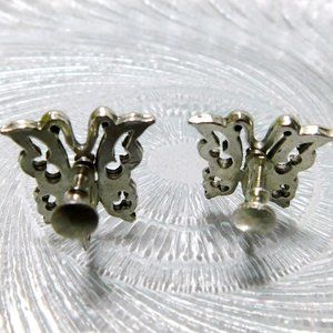 Silver Tone Butterfly Screw on Earrings Womens Fashion Jewelry