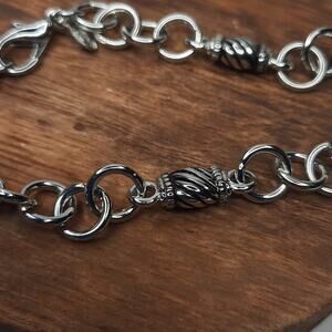 It measures 8" in full with adjustability between 7-8" and has a lobster claw clasp for a secure fit.