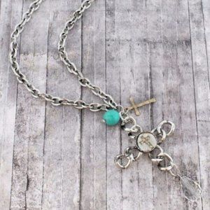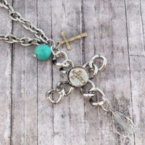 Silver Tone Chain Link Cross Necklace
