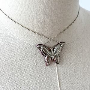 Silver Tone Chain Purple Faux Mother Of Pearl Deco Butterfly Pendant Necklace