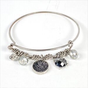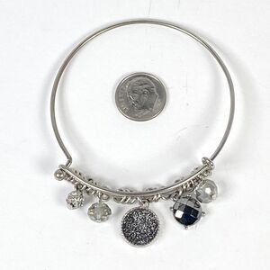 Silver Tone Charm Bracelet Wire Dangle Gray Crystal Rhinestone Bangle Jewelry