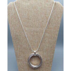 Silver Tone Charter Club Circular Statement Pendant Necklace Long Snake Chain 30