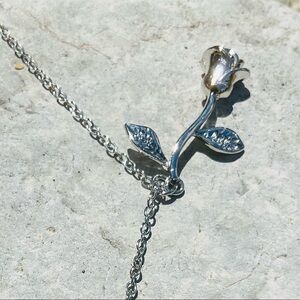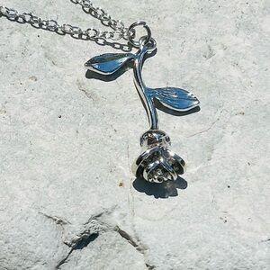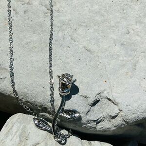 Check out this Silver Tone Classy Simple Rose Detail Pendant Necklace .