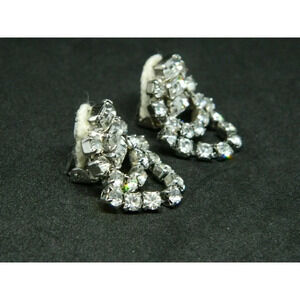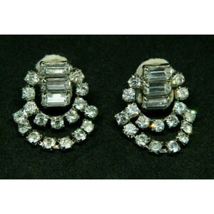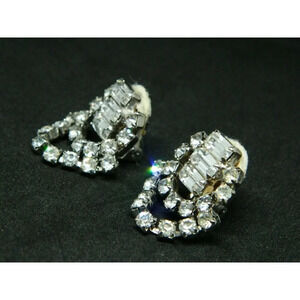 Silver Tone Clear Rhinestone Art Deco Style Abstract Dangle Clip Earrings