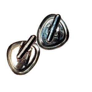 Silver Tone Clear Rhinestone Black Cufflinks Vintage Unsigned.