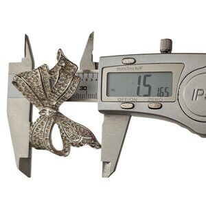 Silver Tone Clear Rhinestone Bow Brooch Rhodium Plated L867