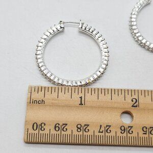 Silver Tone Clear Rhinestone Hoop Bling Earrings 1.75 Inches Vintage