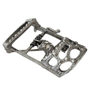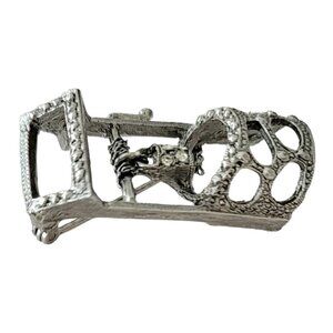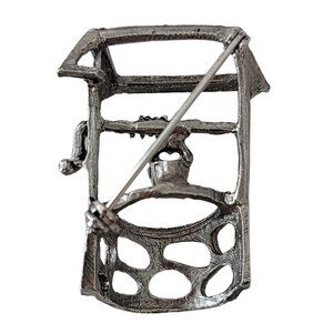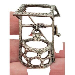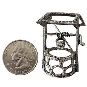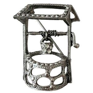 Silver Tone Clear Rhinestone Vintage Wishing Well Brooch Pin E645