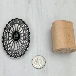 Silver Tone Concho Wild Rag Scarf Slide with Black Stone