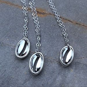 Silver Tone Cowrie Shell Pendant Necklace Silver Tone Alloy Necklace. Listing is for 1 Silver tone Necklace.