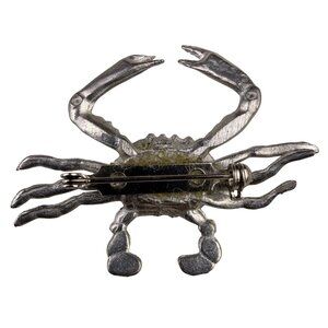 This Silver Tone Crab Shaped Metal Brooch Pin exudes unique charm, featuring a detailed crab design with SP marking on one claw. Crafted from sturdy metal, it showcases a textured silver-tone finish that provides a realistic marine-inspired look. The brooch is secured with a pin fastening on the back, ensuring easy attachment to your clothing or accessories. This brooch makes a distinctive addition to collections or a conversation-starting accent piece.