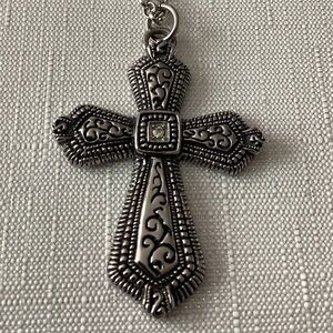The cross is really pretty. It’s got such a beautiful design with a white rhinestone in the middle.