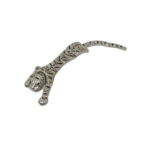 Up for sale is a beautiful Silver Tone Crystal Rhinestones Enamel Articulated Cat Tiger Brooch Pin. This measures approx. 7.5" long. We do have a matching bracelet listed.