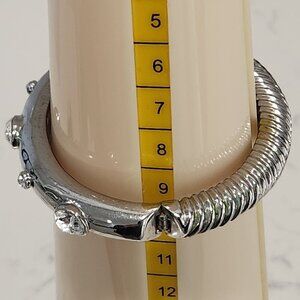 Silver Tone Cuff Bangle Bracelet with White Crystals