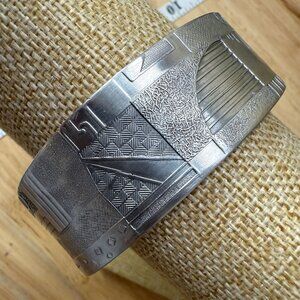 Silver Tone Cuff Bracelet Art Deco, Southwestern, Artisan, Hammered, Chunky