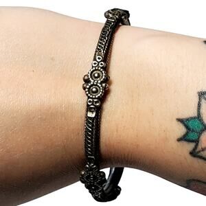 Silver Tone Decorative Bangle Bracelet 9" Vtg