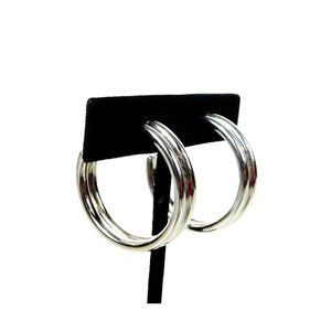 Silver Tone Double Hoop Hollow Pierced Earrings Pushback Closure