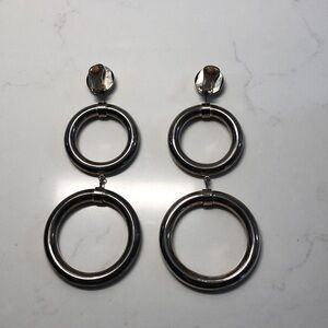 Elegant silver double hoop earrings are light weight perfect for any occasion. Add a touch of sophistication to your outfit in great pre-owned condition.