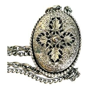 Silver Tone Double Strand Filigree Scroll Openwork Double Sided Pendant Necklace
