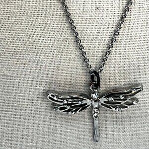 Silver Tone Dragonfly Pendant Necklace With Rhinestones M75