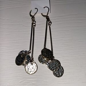 Silver Tone Drop Dangle Hammered Round Disk Earrings