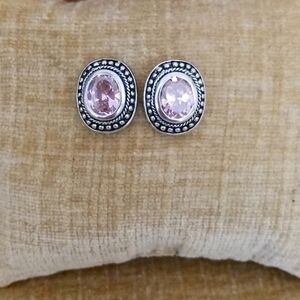 Silver Tone Faceted Light Rose Pink Post Earrings