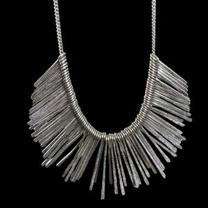 Silver Tone Fashion Necklace Adjustable With Individual Dangle Pieces. Preowned in Good Condition. Approximately 20". Any questions please ask. Thanks for looking.