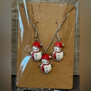 Silver Tone Fashion Snowman Necklace and Earrings Winter Christmas Holiday NEW