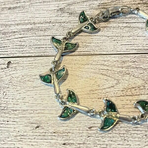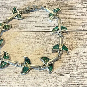 Silver Tone Faux Abalone Shell Fin Bracelet 7”