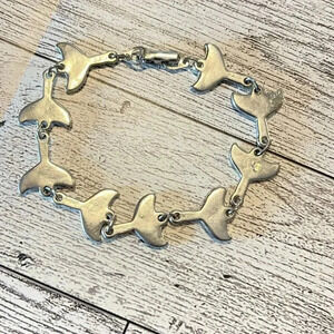 Very cute pho abalone shell fin bracelet 7 inches long with a fold over class. No tarnishing in great shape.